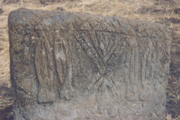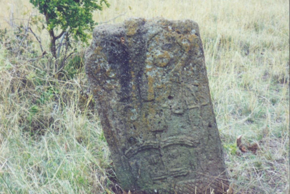 Location: - located 15km from Bui Town Site: - around Amirgei village Identification: - a symbol of sword and cartridge belt depicted on it Height: - about 2 m tall Quantity: - one stelae